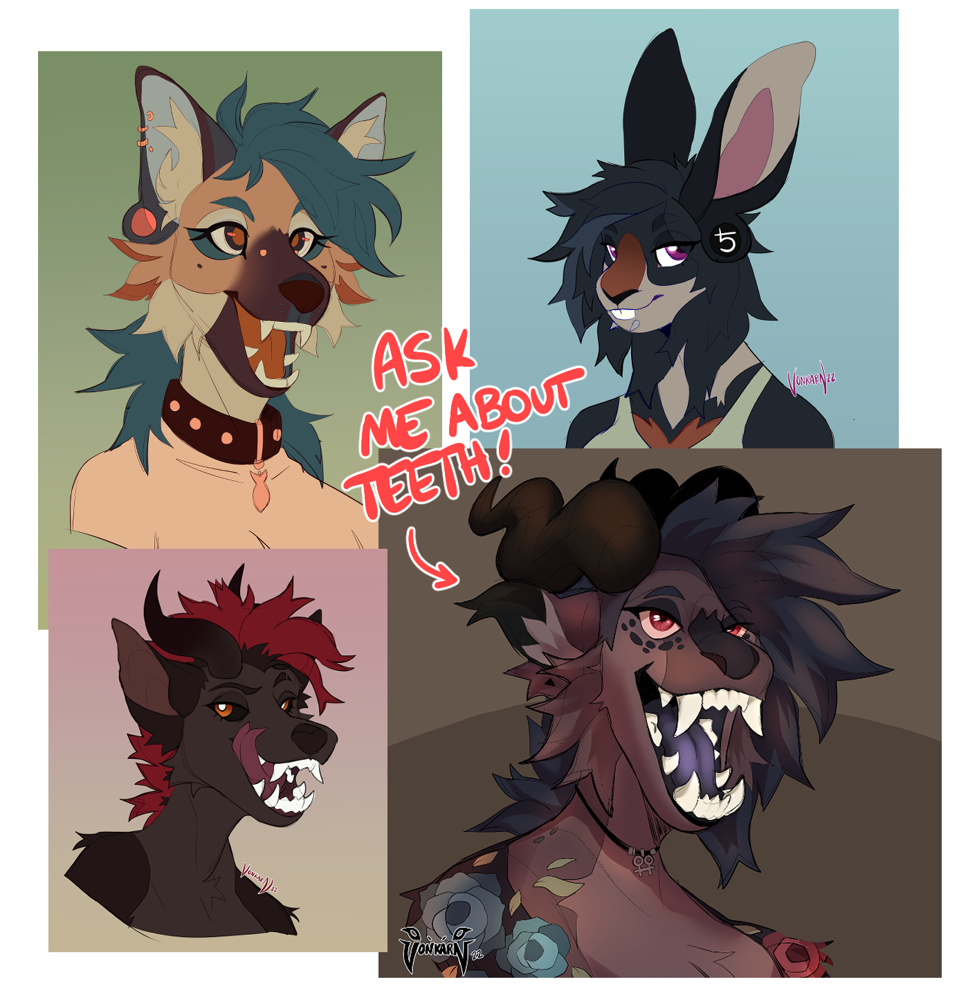 -Are under 18.✯When do your commissions open?Usually monthly or bimonthly, but due to my father having cancer, I am on hiatus until further notice. I tend to take a lot of headshots, which I announce via tweet or tumblr post, but for bigger pieces you'll have to wait for a full opening unless otherwise stated.✯Why don't you want people QRTing your art on twitter?Basically, quote retweeting a tweet treats the tweet as an entirely new post. I don't get notifications for someone's qrt even if I'm being quoted. This means I can't keep track of things like hate speech, misgendering, or rude replies in general. You can imagine why this is a concern, as I do a lot of commission work for trans and queer individuals. This generally also applies to commissions, but for a different reason, which is that direct engagement helps me grow! (Commissioners are, however, allowed to repost their commissions later, for personal use/memes/ect!)✯You didn’t answer my ask?Sometimes I answer out of order. If you sent a nice ask sometimes I keep it for a while just to look at it. I don’t know why I do this I’m weird.✯You support bi/pan lesbians now? I thought you didn't used to.People make mistakes. People learn. I take full responsibility for the opinions I used to hold, and I understand that people might still feel hurt by my lack of support, which sometimes made it's way into full on opposition. Unfortunately sometimes we don't understand things, and are misinformed, and this leads to unfounded and frankly unfair opinions towards people who are just trying to live their lives and do what's comfortable for them. Since realizing I was, frankly, being an absolute shithead, I've written out apologies on my socials, and I apologize to you now. It was not right or fair of me to try and put my fellow queers and lesbians in a box, and it will not happen again. When I say that I love my fellow lesbians, I want people to know I mean all lesbians. I'd also like to state that my wife Laura shares this sentiment. She just doesn't have a carrd.✯But it's problematic to support bi/pan lesbains!!Queer infighting is bullshit and so are you.